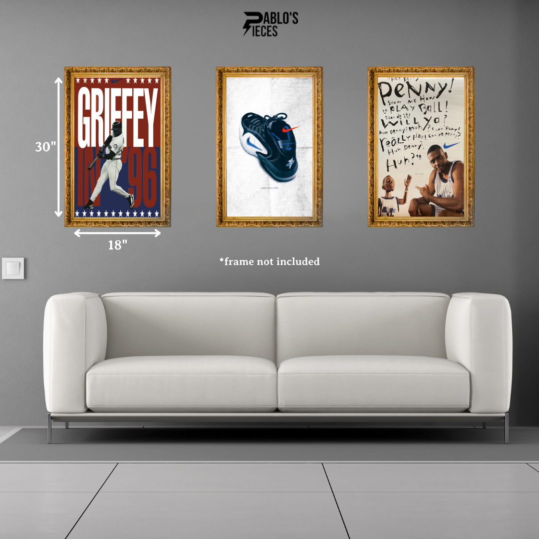 Recommended hanging options: hanging clip, custom framing, wall mounting tape, velcro strips, and mounting art to the exterior of a frame.